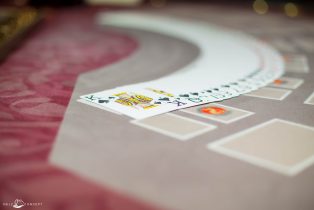 Seven-card poker is played with a starting hand of two down facing cards and one up facing card dealt before the first betting round. There are then three more up facing cards and a final down facing card, with a betting round after each, for a total of five betting rounds on a deal played to the showdown.